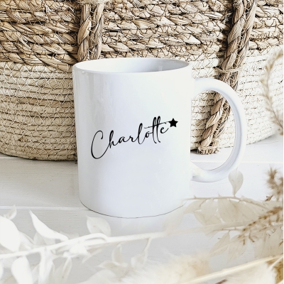 Mug en céramique, blanc 10cm de haut, diamètre 8cm.